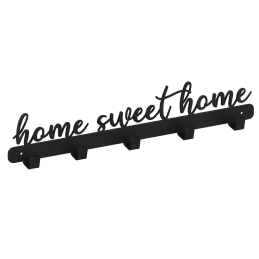 Az elegáns SWEET HOME fali akasztó fekete matt színben ötvözi a funkcionalitást és a dizájnt. A “HOME SWEET HOME” felirattal feltűnő, mégis ízléses kiegészítője lesz minden előszobának, folyosónak vagy hálószobának. Tökéletesen illeszkedik modern és rusztikus enteriőrökbe is.