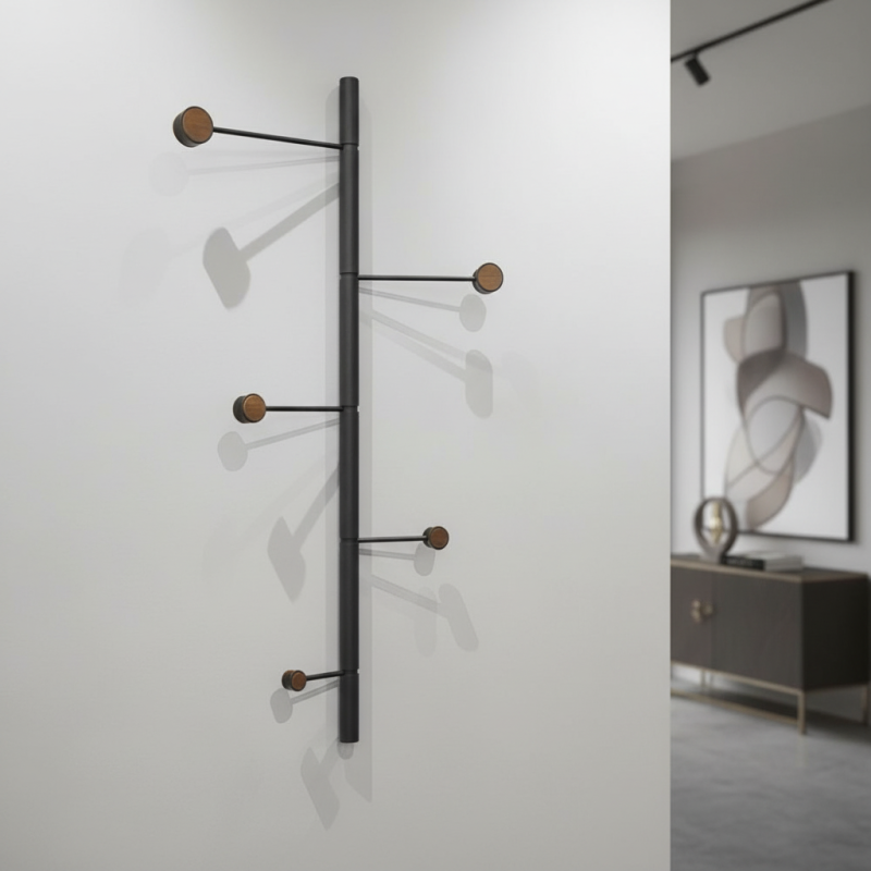 A forgatható karoknak köszönhetően maximális variálhatóságot biztosít – az egyes akasztókat az aktuális igények szerint állíthatja be, ami kényelmes kabátok, dzsekik, kalapok és kiegészítők felakasztását teszi lehetővé.