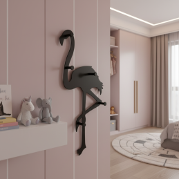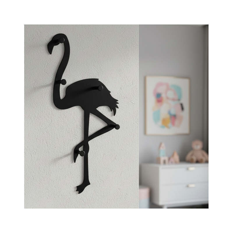 Stílusos falra szerelhető fogas FLAMINGO fekete matt színben, amely egyedi kiegészítő, és azonnal magára vonja a figyelmet. A flamingó sziluettje modern, játékos hatást kelt, és tökéletesen illik gyerekszobákba, előszobákba, kreatív terekbe vagy minimalista vagy skandináv stílusban berendezett enteriőrökbe.
