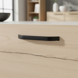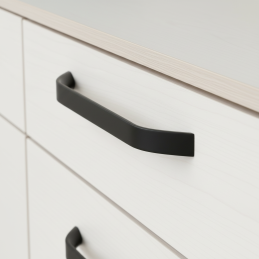 A modern stílusú fogantyú , amely a bútoroknak luxus eleganciát kölcsönöz. A fogantyú 3 méretben kapható, 96 , 128 és 160 mm-es lyukosztással. A fogantyú magassága 28 mm, szélessége 15 mm.