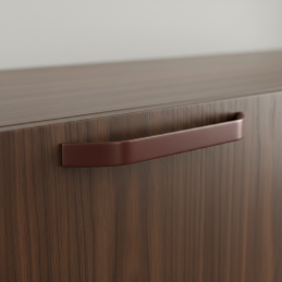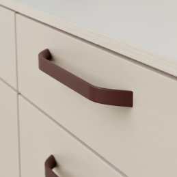 A ZANAR fogantyú bordó árnyalatban markáns, ugyanakkor elegáns színfoltot visz a belső térbe. Ez a sötét, telt szín luxus hatású, modern és tökéletesen kiegészíti a fa dekorokat, a sötét szekrényeket és a minimalista színkombinációkat is. A jellegzetes, tört szögletes forma kényelmes használatot és időtálló megjelenést biztosít.
