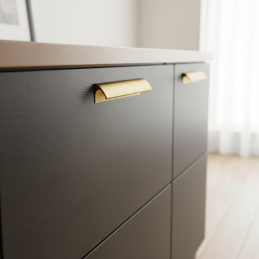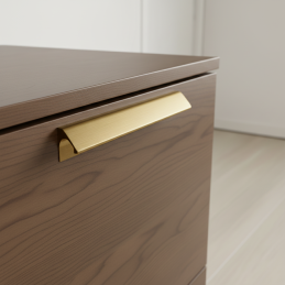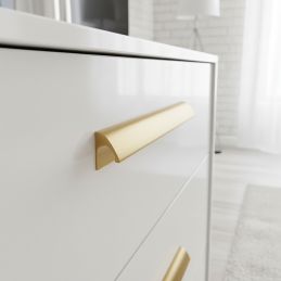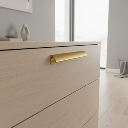 A NALU fogantyú arany szálcsiszolt kivitelben elegáns és modern kiegészítő, amely luxust és időtlen esztétikát visz a belső térbe. Finoman lekerekített, minimalista formája tiszta és kiegyensúlyozott hatást kelt, miközben a szálcsiszolt arany felület kifinomult jelleget ad a fogantyúnak felesleges hivalkodás nélkül.