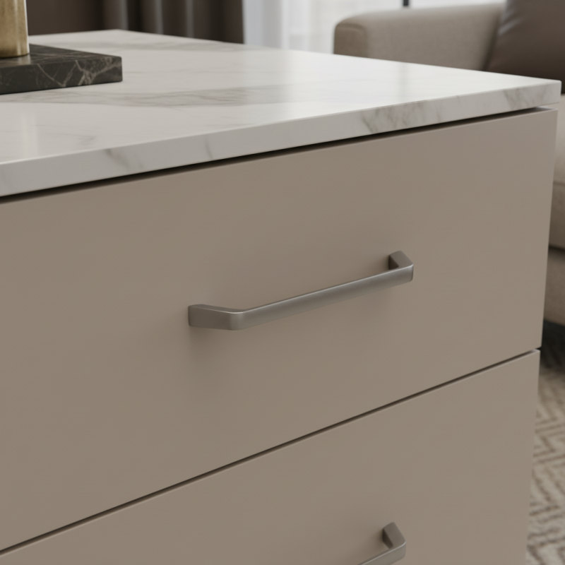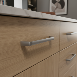 A SAMARA fogantyú ideális konyhákba, fürdőszobákba, nappalikba, gardróbokba és irodabútorokra is. Remekül mutat világos és sötét felületeken, fán, laminált vagy lakkozott ajtókon egyaránt. Többféle méretváltozatának köszönhetően egységes megoldást kínál a teljes bútorzatra – a kisebb fiókoktól a nagyobb szekrényekig.