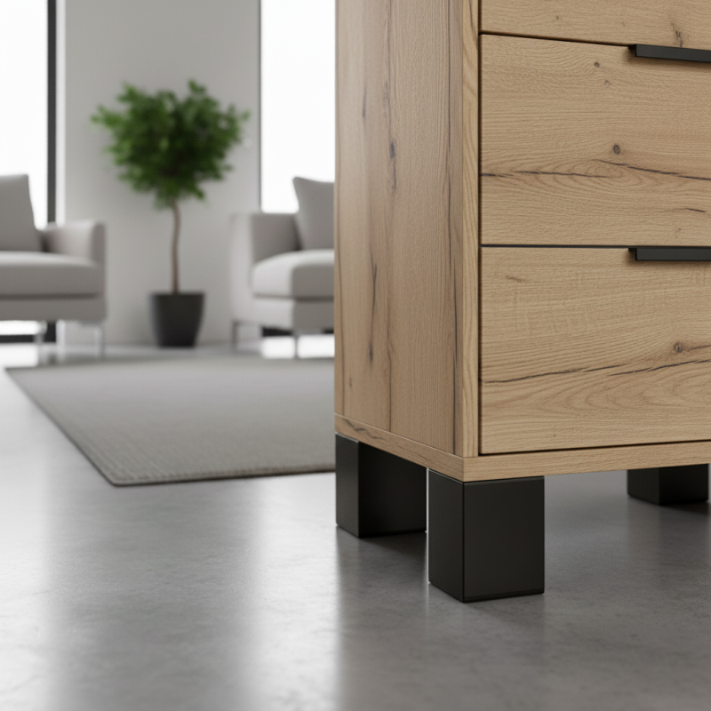 Elegáns, modern és stabil XANA bútorláb stílusos fekete kivitelben, ideális választás komódokhoz, szekrényekhez, TV állványokhoz, fürdőszobabútorhoz vagy éjjeliszekrényekhez.