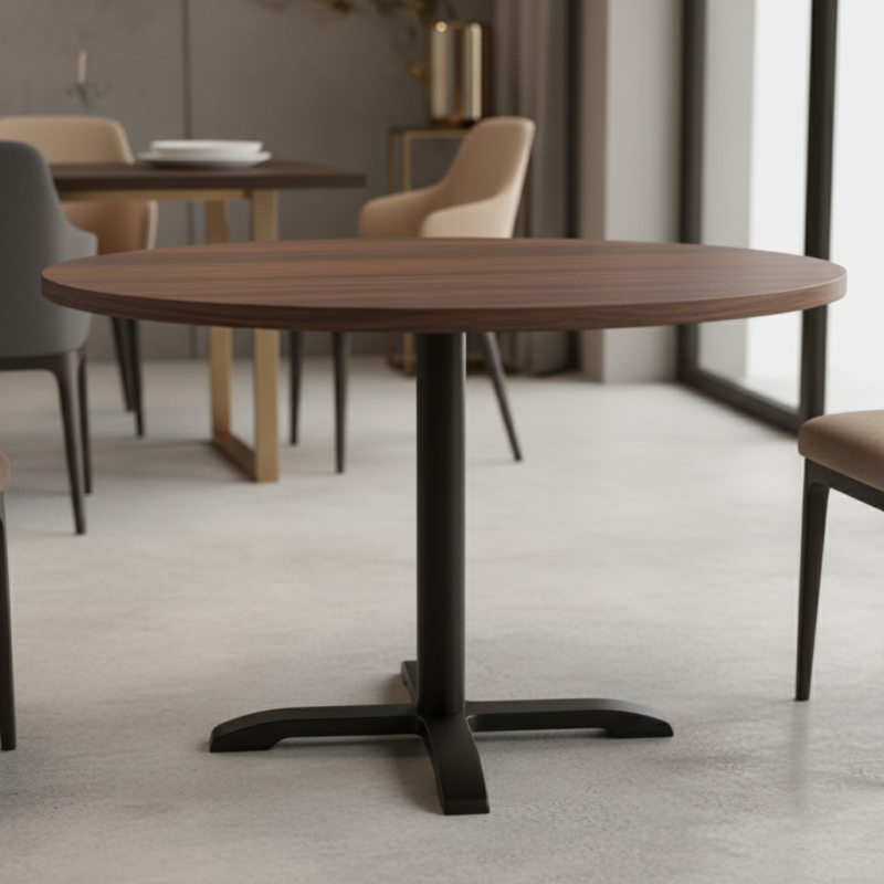 730 mm magas központi asztalláb. Szilárd megjelenésének és nagy súlyának köszönhetően 800 x 800 mm méretű asztallapot képes alátámasztani, és biztosítja az asztal stabilitását.