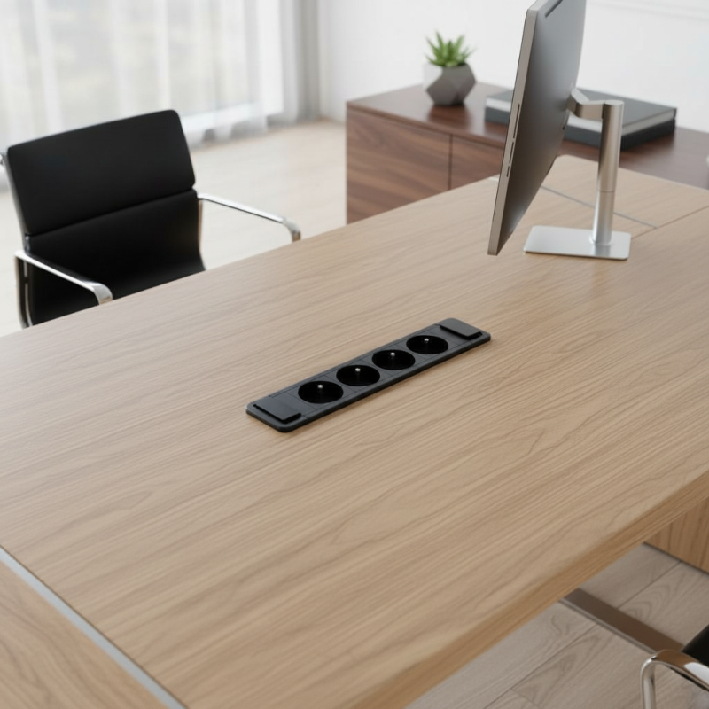 Beltéri dugaljsín CALON FRENCH praktikus és esztétikus megoldás konyhákhoz, irodákhoz, munkaasztalokhoz vagy bútorokhoz. 4× 230V-os aljzatot kínál, kompakt mérete pedig lehetővé teszi az egyszerű szerelést.