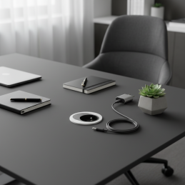 Elegáns és kompakt beépíthető aljzat ATOM FRENCH modern megoldás konyhákba, irodákba, munkaasztalokhoz vagy nappalikba. Minimalista dizájnjának és a felületbe süllyesztésnek köszönhetően ideális mindenhová, ahol meg szeretné őrizni a tiszta és esztétikus megjelenést zavaró elemek nélkül.