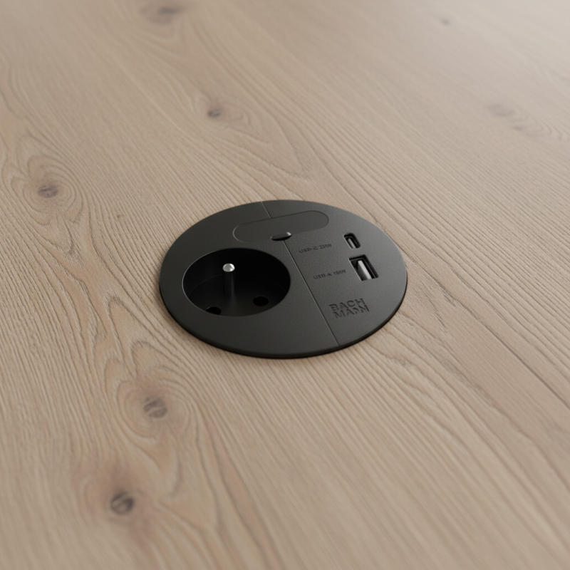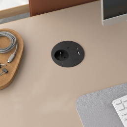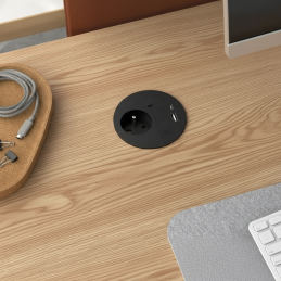 Az LOOP IN Charge elektromos aljzat elegáns fekete kivitelben modern megoldás munkaasztalokhoz, konyhákhoz, irodákhoz vagy beépített bútorokhoz. Ötvözi a prémium dizájnt, a nagy teljesítményt és a praktikusságot – ideális modern és ipari enteriőrökbe is.