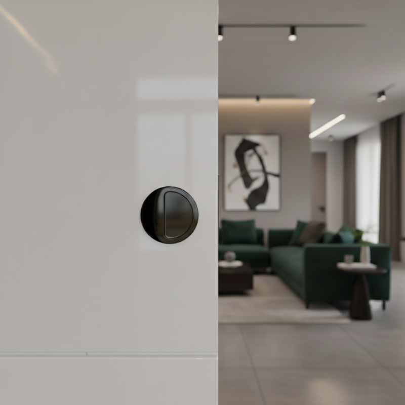 Minimalista TARRA marható fogantyú matt fekete kivitelben ideális megoldás a modern bútorokhoz, ahol a tiszta és zavartalan dizájn a fő szempont. A süllyesztett szerelésnek köszönhetően a fogantyú egy síkban van az ajtó vagy a fiók felületével, így nem zavaró.
