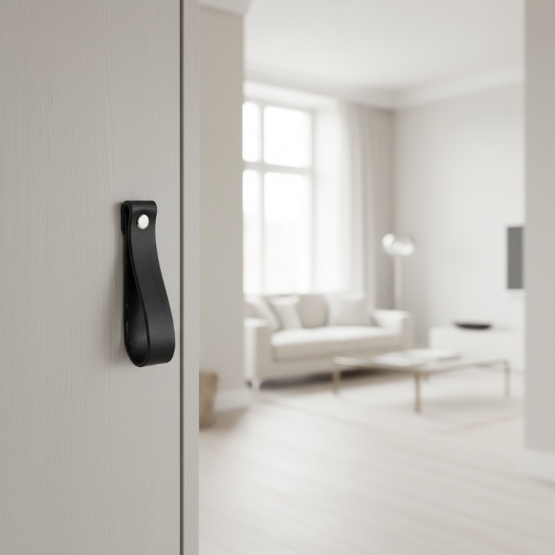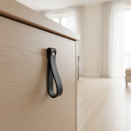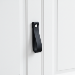 Stílusos bőr fogantyú DOLCE Maxi elegáns fekete színben, amely modern, luxus és egyben puha, természetes hangsúlyt ad a bútornak. Nagyobb hossza miatt hangsúlyosabb, mint a Mini változat, és alkalmas szekrényekhez, komódokhoz vagy fiókokhoz, ahol dizájnhatást szeretne elérni.