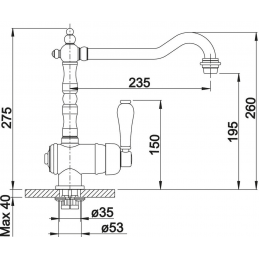 A klasszikus megjelenés mögött modern alkatrészek rejtőznek. A csaptelep kerámia betéttel van felszerelve a sima működés és a hosszú élettartam érdekében. A 360°-ban elforgatható kifolyó maximális rugalmasságot biztosít a használat során.