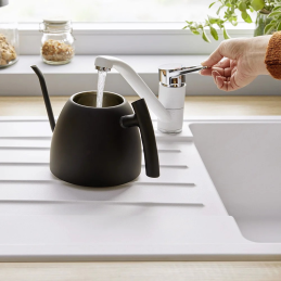 Blanco Wega II Silgranit-Look kivitelben egy modern konyhai csaptelep, amely tökéletesen illik a Blanco gránit mosogatókhoz. Többféle színváltozatban elérhető (pl. fekete, antracit, fehér), így harmonikus egységet alkot a konyhai zónával. Kompakt méreteinek köszönhetően különösen kisebb mosogatókhoz ideális.