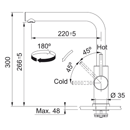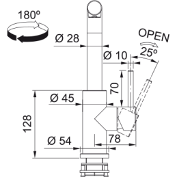 A Smart Glenda sorozatból származó konyhai csaptelep egyszerű kialakításával és funkcionalitásával tűnik ki. Teljesen rozsdamentes acél anyagból készült, L alakú, 180°-ig elforgatható forgó karral. A csatlakozótömlők 50 cm hosszúak és 3/8" csatlakozóval rendelkeznek. A vízáramlás 12,3 l/perc 3 bar nyomáson.