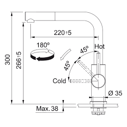 A keverő rögzítőanyával van felszerelve, és 35 mm átmérőjű furatot igényel. A csaptelep oldalán található vezérlőkar segítségével könnyen beállítható a hőmérséklet és a vízáramlás.