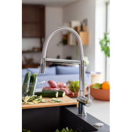 A Franke FN 3407 Active Semi Pro egy progresszív karos konyhai keverő, amely a modern megjelenést rendkívül funkcionális funkciókkal ötvözi. A nyomócsap 180°-os elforgatást tesz lehetővé, és rugós kifolyóval van ellátva, ami nagyban megkönnyíti a mindennapi konyhai használatot.