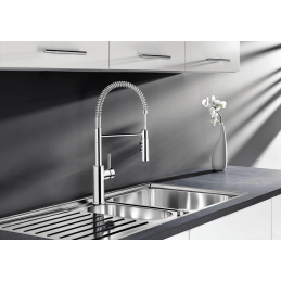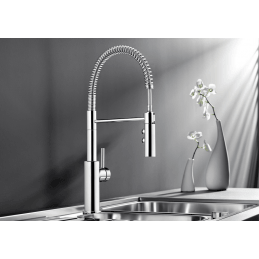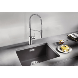Ez a BLANCO professzionális konyhai csaptelep ötvözi a modern dizájnt, a magas funkcionalitást és a precíz kidolgozást. A rozsdamentes rugó lehetővé teszi a zuhanyfej szabad mozgását a mosogató teljes területén, miközben egyszerűen rögzíthető a csaptelep testébe. A praktikus megoldásnak köszönhetően maximális szabadságot biztosít a konyhai munkában – ideális mindennapi és intenzív használatra is.