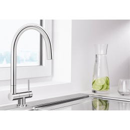 Blanco Coressa-F egy modern és funkcionális konyhai csaptelep, amelyet kifejezetten ablak elé történő elhelyezéshez terveztek. Ötvözi a praktikus megoldást a stílusos dizájnnal, így maximális kényelmet és esztétikát kínál egyetlen formában.