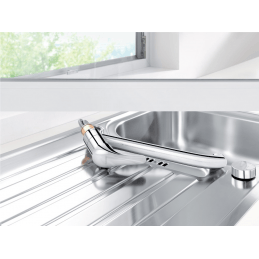Blanco Daras-F egy praktikus és megfizethető konyhai csaptelep, amelyet ablak elé történő beszerelésre terveztek. Lehajtható mechanizmusának köszönhetően egyszerű és gyors a kezelése – a csaptelepet csak függőlegesen fel kell emelni és oldalra tenni, hogy semmi ne akadályozza az ablak kinyitását. Ideális választás olyan konyhákba, ahol a mosogató az ablakpárkány alatt helyezkedik el.