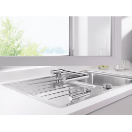 Blanco Laressa-F egy elegáns és rendkívül funkcionális egykaros konyhai csaptelep, amelyet kifejezetten ablak elé történő elhelyezésre terveztek. Jellegzetes L alakú kifolyója növeli a mindennapi használat kényelmét, és lehetővé teszi a csaptelep egyszerű lehajtását, ha ki kell nyitni az ablakot.