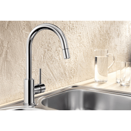 Blanco MIDA-S egy stílusos konyhai csaptelep kihúzható zuhannyal, amely finoman lekerekített, karcsú testével és időtlen dizájnjával hívja fel magára a figyelmet. Remekül illik a modern konyhákba, és a BLANCO márkájú mosogatókkal kombinálva harmonikus és egységes megjelenést kölcsönöz a munkaterületnek.