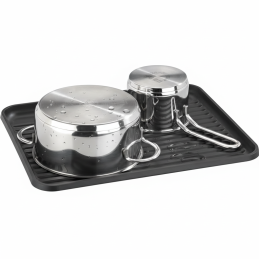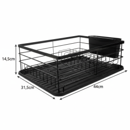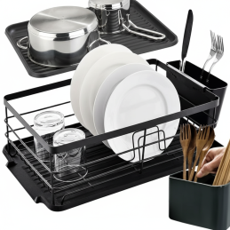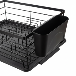 Az edényszárító elegendő helyet biztosít tányérok, poharak és konyhai kiegészítők számára. Tartozéka egy praktikus, levehető evőeszköztartó kosár és egy műanyag csepegtetőtálca, amely felfogja a vizet, és megvédi a munkalapot a nedvességtől.