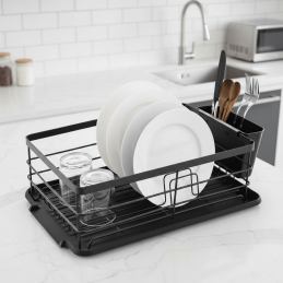A praktikus és modern ANARO edényszárító fekete matt kivitelben fekete matt ideális kiegészítője minden konyhának. Minimalista dizájnjának és matt fekete felületének köszönhetően elegáns megjelenésű, és könnyen kombinálható modern vagy ipari stílusú enteriőrökkel.
