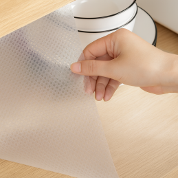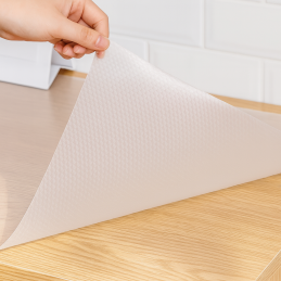 Az alátét könnyen méretre vágható – csak ollóval vágja a fiók vagy polc méretéhez. Az átlátszó kivitelnek köszönhetően tökéletesen illeszkedik bármely belső térbe anélkül, hogy megzavarná a dizájnt.
