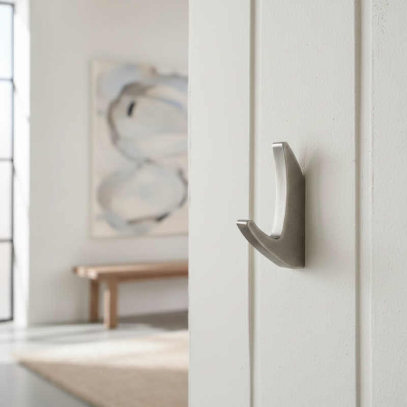 A KOS Mini fogas elegáns csiszolt nikkel kivitelben ideális kiegészítő modern és klasszikus enteriőrökbe egyaránt. A finom csiszolt felületi struktúra prémium megjelenést kölcsönöz a fogasnak, és egyben növeli a karcolásokkal szembeni ellenállóságát.