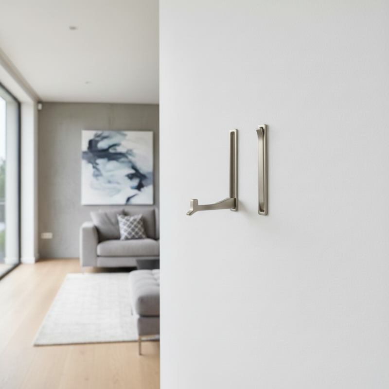 A billenő akasztó VERNON Mini szálcsiszolt nikkel felülettel elegáns és időtálló megoldást kínál olyan enteriőrökbe, ahol a letisztult dizájn és a praktikus helykihasználás a prioritás. Lehajtott állapotban az akasztó teljesen rejtve marad a felületen – láthatatlan, nem zavarja a dizájnvonalakat, és tökéletesen beleolvad a bútorba vagy az ajtóba.