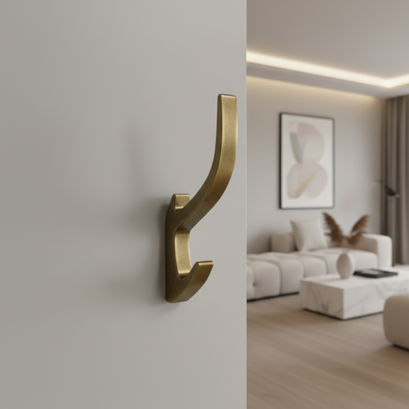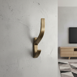 A stílusos és elegáns KOS fogas antik arany kivitelben luxust és klasszikus eleganciát kölcsönöz a belső térnek. A finoman ívelt forma és a dupla akasztó lehetővé teszi a ruhák, törölközők vagy kiegészítők praktikus elhelyezését. Az „antik arany” felület kifinomult, enyhén patinás megjelenést kölcsönöz, amely hagyományos és modern terekbe egyaránt illik.