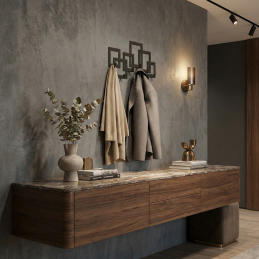 A modern QUADRO fali fogas eredeti geometriai formájával és markáns ipari megjelenésével hívja fel magára a figyelmet. Ideális kiegészítő előszobába, gardróbba, irodába vagy modern enteriőrbe, ahol a dizájn és a funkcionalitás is fontos szerepet kap.