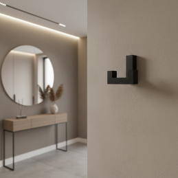 Elegáns és praktikus akasztó modern kialakításban, elölről párnára szerelhető. A felszerelés egyszerű - az alátétet dübelekkel és csavarokkal (tartozék) rögzítjük a falhoz, majd az akasztót ráillesztjük, és alulról egy csavarral rögzítjük.
