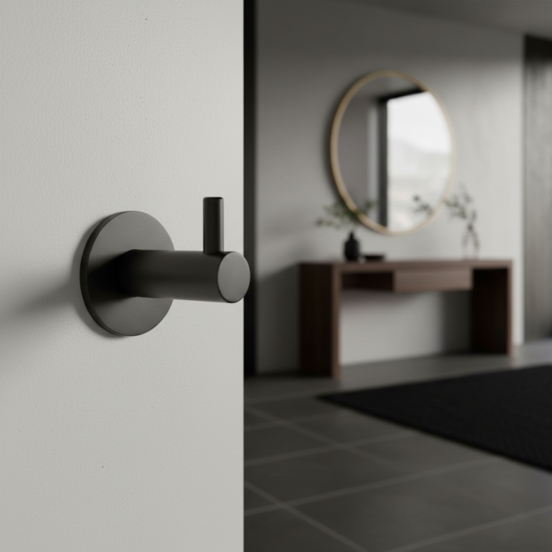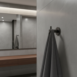 Elegáns fali akasztó MAGDA modern kivitelben sötét antracit letisztult, technikai dizájnjával és kompakt méreteivel hívja fel magára a figyelmet. A hengeres forma rövid felső kampóval kombinálva minimalista és időtlen hatást kelt, így az akasztó könnyen beilleszthető modern, ipari vagy loft stílusú enteriőrökbe.