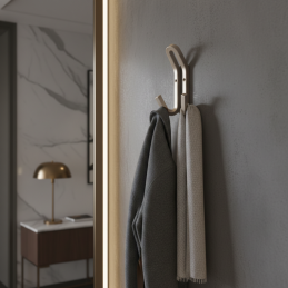 Minőségi fém fogas modern és elegáns kivitelben, csiszolt nikkelből, amely illik a kortárs és időtlen enteriőrökbe egyaránt. Masszív kialakításának köszönhetően ideális előszobákba, folyosókra, gardróbokba, fürdőszobákba vagy irodákba. A dupla akasztó elegendő helyet biztosít kabátok, dzsekik, táskák vagy kiegészítők felakasztására.