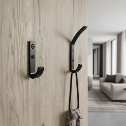 FIT Mini egy egyszerű és modern bútorakasztó matt fekete felülettel, amely letisztult dizájnjával és univerzális felhasználásával tűnik ki. Kompakt méreteinek köszönhetően ideális főként kisebb helyiségekbe, bútorokra, ajtókra, falakra vagy szekrények oldalfalaira.