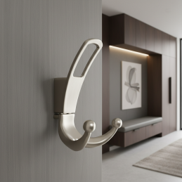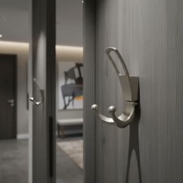 A csiszolt nikkelnek köszönhetően a fogas elegáns megjelenésű, és modern, minimalista vagy irodai enteriőrökbe is illik.