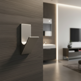 A TERZA modern dizájnos fogas szálcsiszolt nikkel kivitelben elegáns és praktikus kiegészítője a modern és ipari enteriőröknek egyaránt. Jellegzetes geometrikus formája, ferde vonalával tiszta és időtlen hatást kelt, miközben kényelmes és biztonságos ruhák vagy kiegészítők felakasztását teszi lehetővé.