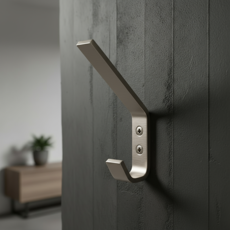 Dizájnos fali akasztó előlapi rögzítéssel, az akasztóval azonos színű csavarokkal.