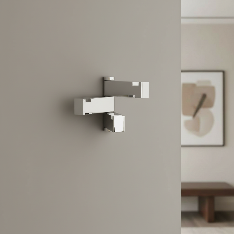 Dizájnos forgatható akasztó három karral, amelyek külön-külön forgathatók, így praktikus és rugalmas felhasználást biztosítanak az előszobában, fürdőszobában vagy gardróbban. A felszerelés elölről a falra csavarokkal történik.