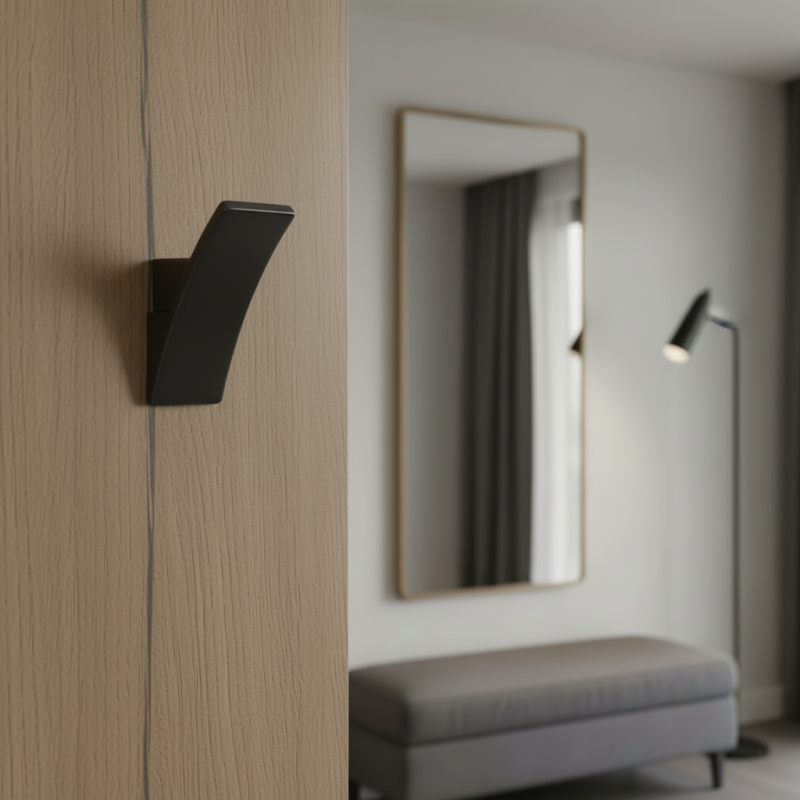 Dizájnos és multifunkcionális akasztó, amely egyben bútorfogantyúként – gombként is szolgálhat. Modern formájával, kiváló kidolgozásával és praktikus 35 mm-es mélységével tűnik ki, amelynek köszönhetően kényelmesen használható.
