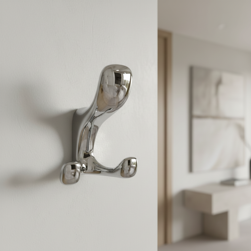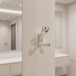 A fogas dupla akasztóval van felszerelve, amely lehetővé teszi a kabátok, dzsekik, táskák vagy kiegészítők kényelmes felakasztását. Elölről történő rögzítésre (falra vagy bútorra) tervezték, a rögzítőcsavarok elölről hozzáférhetők, így a felszerelés egyszerű.