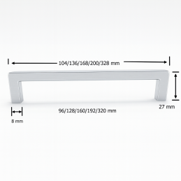 Az ERON fogantyú különböző hosszúságokban kapható, hogy minden ajtóhoz vagy fiókhoz igazítható legyen.