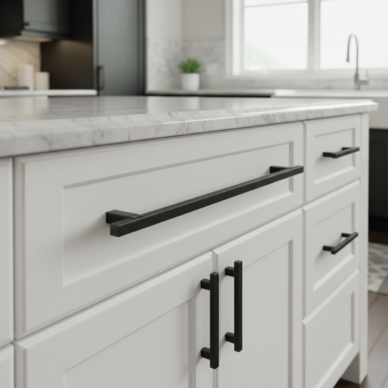 A fekete matt szín rendkívül népszerű a modern enteriőr dizájnban, mert elegánsan kontrasztál a fával, világos és sötét dekorokkal egyaránt. A ZAIRA fogantyú texturált felületével kombinálva stílusos, időtálló és nagyon esztétikus részletet ad bútorának.