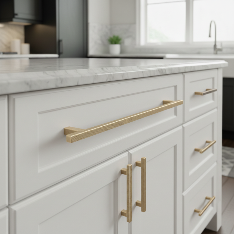 A matt arany elegáns, modern és finoman luxus. A ZAIRA fogantyú texturált felületével kombinálva olyan részletet alkot, amely értékes, dizájnos és egyben visszafogott hatást kelt. Tökéletesen kiegészíti a világos fát, a fehér bútort, a fekete elemeket és a prémium enteriőr összeállításokat is.