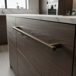 A ZAIRA fogantyú antik sárgaréz felülettel karakteres, finoman domború textúrájával tűnik ki, amely autentikus ipari, vintage és loft stílust kölcsönöz a bútornak. Szögletes formájának, precíz kidolgozásának és kellemes súlyának köszönhetően masszív, mégis elegáns hatást kelt. A fogantyú ideális választás konyhákhoz, komódokhoz, szekrényekhez, gardróbokhoz és dizájn bútormegoldásokhoz is.