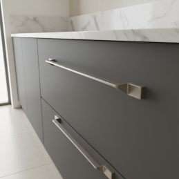A matt nikkel rendkívül sokoldalú és elegáns kivitel, amely professzionális és minőségi hatást kelt. A VENITA fogantyú ebben a változatban remekül kiegészíti a modern és klasszikus bútorokat, és a dizájnos törésnek köszönhetően eredeti és ízléses hangsúlyt ad.
