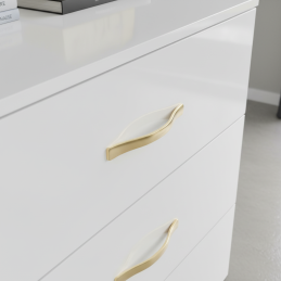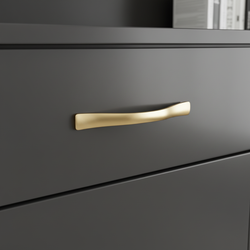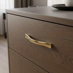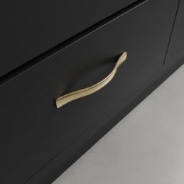 A NICOLA fogantyú elegáns matt arany kivitelben modern kiegészítő, amely luxust és kifinomultságot kölcsönöz bútorainak. Finoman hullámos formája ergonomikus és esztétikus kialakítású – ennek köszönhetően a fogantyú kellemes tapintású és vizuálisan is érdekes. A matt arany szín nemes hatást kelt, de nem túl hivalkodó, és szépen illik a fához, sötét dekorokhoz és világos, minimalista felületekhez is.