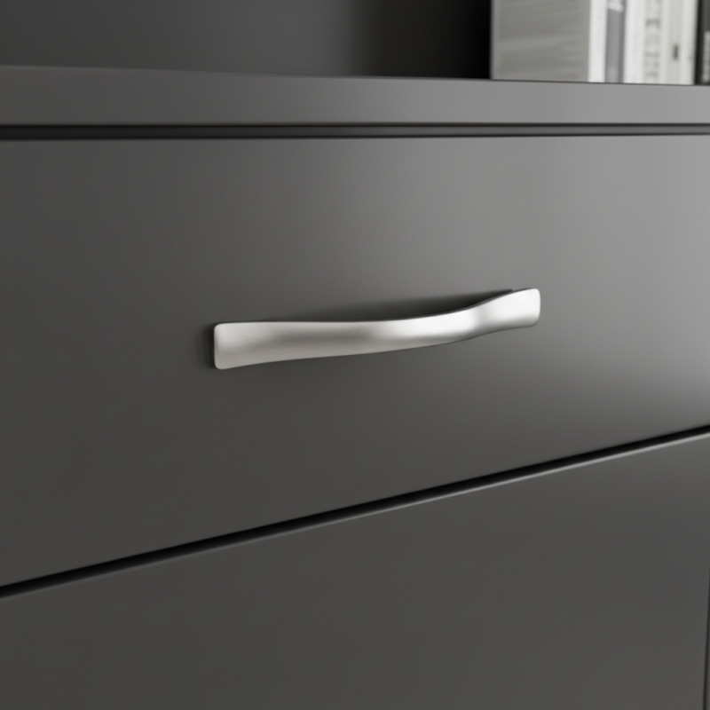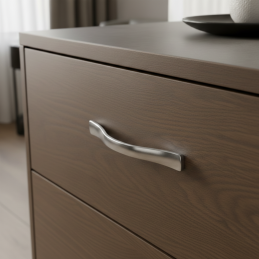 A NICOLA fogantyú rozsdamentes felületkezeléssel modern, univerzális és rendkívül praktikus kiegészítő konyhákhoz, fürdőszobákhoz, komódokhoz vagy gardróbokhoz. Elegánsan hullámos formája kényelmes fogást biztosít, és finom, dinamikus hangsúlyt ad a bútornak, amely modern és kiegyensúlyozott hatást kelt. A rozsdamentes felület ismert tartósságáról, egyszerű karbantartásáról és időtálló megjelenéséről, ezért az egyik legkedveltebb anyag a belsőépítészetben.