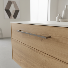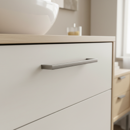 Stílusos fogantyú modern minimalista kivitelben, amely elegáns és fényűző megjelenést kölcsönöz bútorainak. Karcsú vonalvezetésének és kiváló minőségű acélból készült kivitelének köszönhetően modern belső terekbe, konyhákba vagy irodákba illeszkedik.