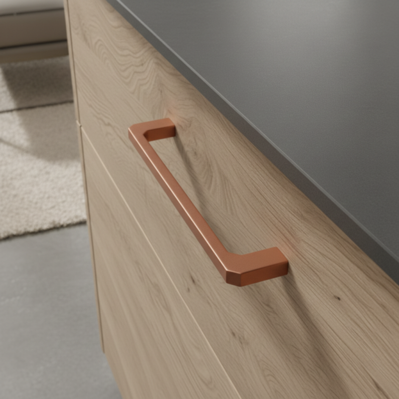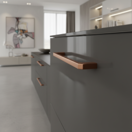 A SVOOP fogantyú matt réz felülettel a minimalista formát ötvözi a trendi színvilággal, amely elegáns, modern és egyben otthonos jelleget kölcsönöz a bútornak. Tiszta vonalai és finoman lecsapott élei kifinomult hatást keltenek, miközben a matt réz kellemes, meleg légkört teremt minden enteriőrben. Kiválóan illik konyhabútorokhoz, komódokhoz,...